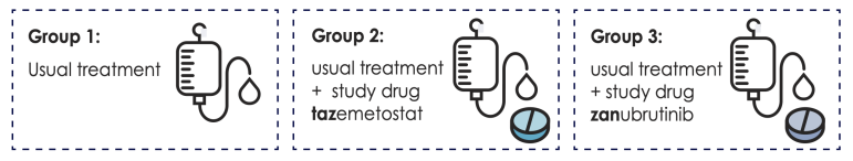 The study treatments combine the usual treatment with one of the study drugs:
