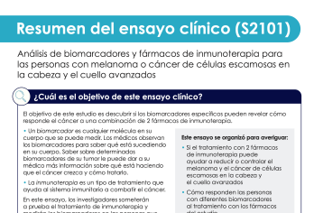 - Si el tratamiento con 2 fármacos de inmunoterapia puede ayudar a reducir o controlar el melanoma y el cáncer de células escamosas en la cabeza y el cuello avanzados