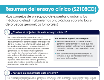 - Si un comité tumoral genómico mejora la forma en la que los médicos interpretan los resultados de la prueba.